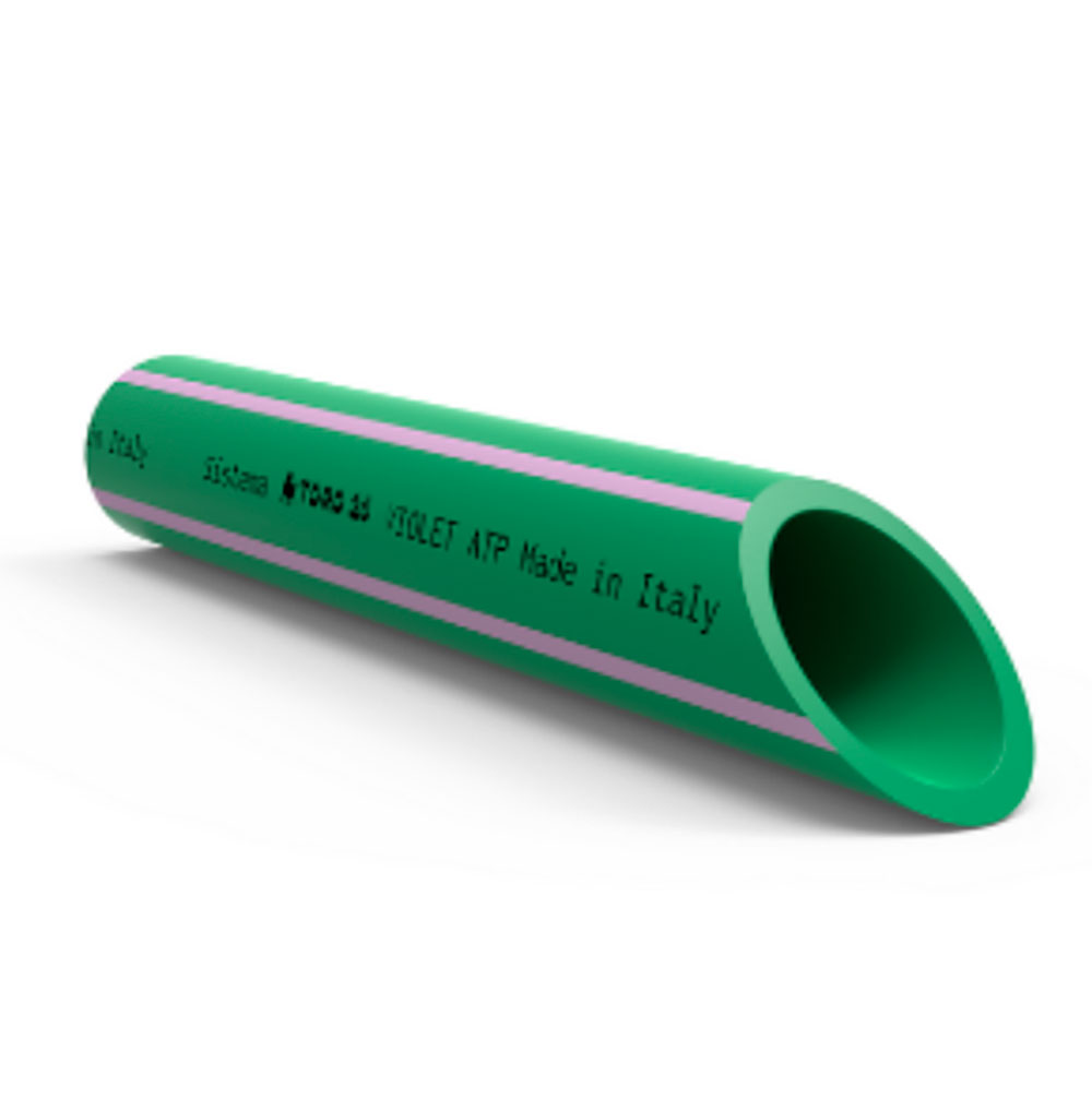 El sistema TORO 25 VIOLET está compuesto por tubos monocapa realizados en PP-R Polipropileno Copolímero Random, con aditivos para aumentar la resistencia al pH bajo y al alto nivel de alcalinidad.